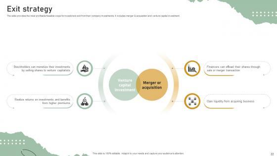 The slide provides the most profitable or feasible ways for investors to exit from their company investments. It includes merger and acquisition and venture capital investment. From laying roadmaps to briefing everything in detail, our templates are perfect for you. You can set the stage with your presentation slides. All you have to do is download these easy-to-edit and customizable templates. Exit Strategy Personal Styling Service Investor Funding Elevator Pitch Deck will help you deliver an outstanding performance that everyone would remember and praise you for. Do download this presentation today. The slide provides the most profitable or feasible ways for investors to exit from their company investments. It includes merger and acquisition and venture capital investment.