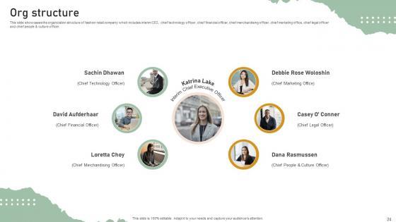This slide showcases the organization structure of fashion retail company which includes interim CEO, chief technology officer, chief financial officer, chief merchandising officer, chief marketing office, chief legal officer and chief people and culture officer.Crafting an eye-catching presentation has never been more straightforward. Let your presentation shine with this tasteful yet straightforward Org Structure Personal Styling Service Investor Funding Elevator Pitch Deck template. It offers a minimalistic and classy look that is great for making a statement. The colors have been employed intelligently to add a bit of playfulness while still remaining professional. Construct the ideal Org Structure Personal Styling Service Investor Funding Elevator Pitch Deck that effortlessly grabs the attention of your audience Begin now and be certain to wow your customers This slide showcases the organization structure of fashion retail company which includes interim CEO, chief technology officer, chief financial officer, chief merchandising officer, chief marketing office, chief legal officer and chief people and culture officer.
