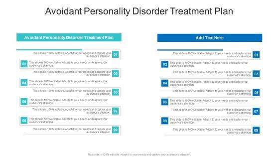 Introducing our well designed Avoidant Personality Disorder Treatment Plan In Powerpoint And Google Slides Cpb. This PowerPoint design presents information on topics like Avoidant Personality Disorder Treatment Plan. As it is predesigned it helps boost your confidence level. It also makes you a better presenter because of its high quality content and graphics. This PPT layout can be downloaded and used in different formats like PDF, PNG, and JPG. Not only this, it is available in both Standard Screen and Widescreen aspect ratios for your convenience. Therefore, click on the download button now to persuade and impress your audience. Our Avoidant Personality Disorder Treatment Plan In Powerpoint And Google Slides Cpb are topically designed to provide an attractive backdrop to any subject. Use them to look like a presentation pro.