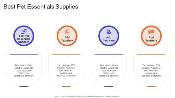 Introducing our well designed Best Pet Essentials Supplies In Powerpoint And Google Slides Cpb. This PowerPoint design presents information on topics like Best Pet Essentials Supplies. As it is predesigned it helps boost your confidence level. It also makes you a better presenter because of its high quality content and graphics. This PPT layout can be downloaded and used in different formats like PDF, PNG, and JPG. Not only this, it is available in both Standard Screen and Widescreen aspect ratios for your convenience. Therefore, click on the download button now to persuade and impress your audience. Our Best Pet Essentials Supplies In Powerpoint And Google Slides Cpb are topically designed to provide an attractive backdrop to any subject. Use them to look like a presentation pro.