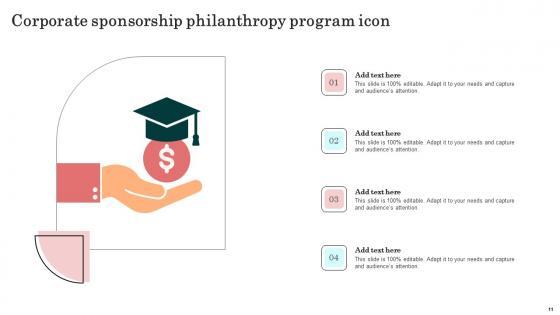 Pitch your topic with ease and precision using this Corporate Sponsorship Philanthropy Program Icon Microsoft Pdf. This layout presents information on Corporate Sponsorship, Philanthropy Program Icon. It is also available for immediate download and adjustment. So, changes can be made in the color, design, graphics or any other component to create a unique layout. Our Corporate Sponsorship Philanthropy Program Icon Microsoft Pdf are topically designed to provide an attractive backdrop to any subject. Use them to look like a presentation pro.
