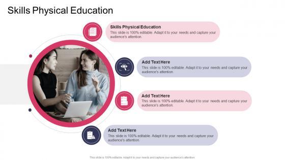 Presenting our innovatively designed set of slides titled Skills Physical Education In Powerpoint And Google Slides Cpb This completely editable PowerPoint graphic exhibits Skills Physical Education that will help you convey the message impactfully. It can be accessed with Google Slides and is available in both standard screen and widescreen aspect ratios. Apart from this, you can download this well structured PowerPoint template design in different formats like PDF, JPG, and PNG. So, click the download button now to gain full access to this PPT design. Our Skills Physical Education In Powerpoint And Google Slides Cpb are topically designed to provide an attractive backdrop to any subject. Use them to look like a presentation pro.
