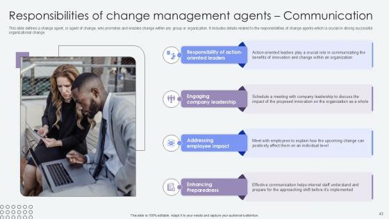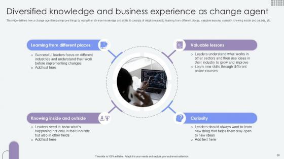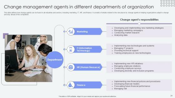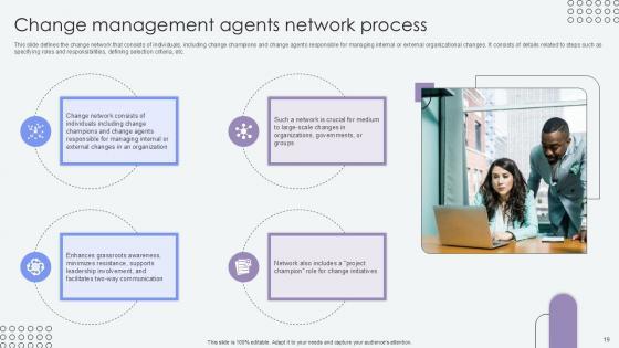 This Agents Of Change Pioneers Of Organizational Progress Ppt Example CM CD V is a primer on how to capitalize on business opportunities through planning, innovation, and market intelligence. The content-ready format of the complete deck will make your job as a decision-maker a lot easier. Use this ready-made PowerPoint Template to help you outline an extensive and legible plan to capture markets and grow your company on the right path, at an exponential pace. What is even more amazing is that this presentation is completely editable and 100 percent customizable. This eighty two-slide complete deck helps you impress a roomful of people with your expertise in business and even presentation. Craft such a professional and appealing presentation for that amazing recall value. Download now. Our Agents Of Change Pioneers Of Organizational Progress Ppt Example CM CD V are topically designed to provide an attractive backdrop to any subject. Use them to look like a presentation pro.