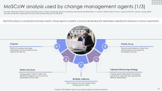 This slide defines the MoSCoW analysis technique used by change management agents for prioritizing requirements with stakeholders. It consists of details related to how by employing MoSCoW analysis, change agents streamline stakeholder collaboration and ensure that essential needs are met effectively. Explore a selection of the finest Moscow Analysis Used By Agents Of Change Pioneers PPT Sample CM SS V here. With a plethora of professionally designed and pre-made slide templates, you can quickly and easily find the right one for your upcoming presentation. You can use our Moscow Analysis Used By Agents Of Change Pioneers PPT Sample CM SS V to effectively convey your message to a wider audience. Slidegeeks has done a lot of research before preparing these presentation templates. The content can be personalized and the slides are highly editable. Grab templates today from Slidegeeks. This slide defines the MoSCoW analysis technique used by change management agents for prioritizing requirements with stakeholders. It consists of details related to how by employing MoSCoW analysis, change agents streamline stakeholder collaboration and ensure that essential needs are met effectively.