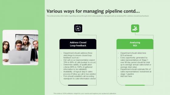This slide shows various ways to clean up sales pipeline for smooth operations. Ways mentioned in the slide are identify prospects, send sales breakup mail, regular review of pipeline etc. Presenting Ways To Clean Up Sales Pipeline Sales Funnel Management Strategies To Increase Sales Topics PDF to provide visual cues and insights. Share and navigate important information on four stages that need your due attention. This template can be used to pitch topics like Successful Deal, Determine Importance, Prospect Remove. In addtion, this PPT design contains high resolution images, graphics, etc, that are easily editable and available for immediate download.