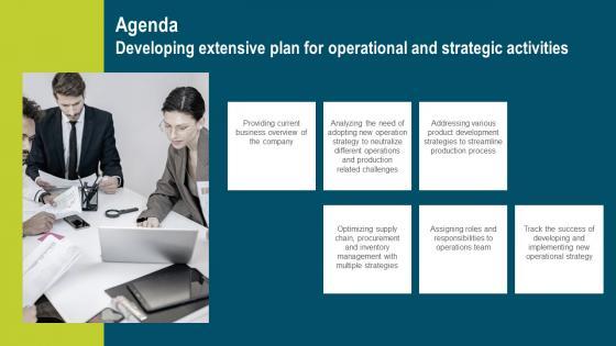 Create an editable Agenda Developing Extensive Plan For Operational And Strategic Activities Inspiration Pdf that communicates your idea and engages your audience. Whether you are presenting a business or an educational presentation, pre-designed presentation templates help save time. Agenda Developing Extensive Plan For Operational And Strategic Activities Inspiration Pdf is highly customizable and very easy to edit, covering many different styles from creative to business presentations. Slidegeeks has creative team members who have crafted amazing templates. So, go and get them without any delay. Our Agenda Developing Extensive Plan For Operational And Strategic Activities Inspiration Pdf are topically designed to provide an attractive backdrop to any subject. Use them to look like a presentation pro.