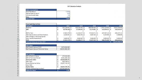 The purpose of this slide is to calculate the amount of money an investor would get from an investment after adjusting for the time value of money. It covers things like risk free return, free cash flow to the company, NPV value of FCFF and terminal year, and so on. Get a simple yet stunning designed Discounted Cash Flow Valuation Real Estate Agent Business Plan Go To Market Strategy Ideas Pdf. It is the best one to establish the tone in your meetings. It is an excellent way to make your presentations highly effective. So, download this PPT today from Slidegeeks and see the positive impacts. Our easy to edit Discounted Cash Flow Valuation Real Estate Agent Business Plan Go To Market Strategy Ideas Pdf can be your go to option for all upcoming conferences and meetings. So, what are you waiting for Grab this template today. The purpose of this slide is to calculate the amount of money an investor would get from an investment after adjusting for the time value of money. It covers things like risk free return, free cash flow to the company, NPV value of FCFF and terminal year, and so on.