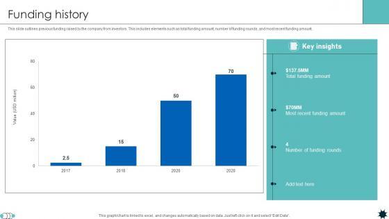 This slide outlines previous funding raised by the company from investors. This includes elements such as total funding amount, number of funding rounds, and most recent funding amount. Do you have an important presentation coming up Are you looking for something that will make your presentation stand out from the rest Look no further than Service Platform,Work Certification With our professional designs, you can trust that your presentation will pop and make delivering it a smooth process. And with Slidegeeks, you can trust that your presentation will be unique and memorable. So why wait Grab Funding History Life Coverage Platform Pitch Deck today and make your presentation stand out from the rest This slide outlines previous funding raised by the company from investors. This includes elements such as total funding amount, number of funding rounds, and most recent funding amount.