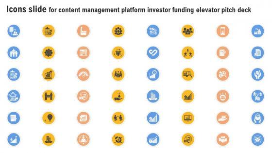 Introducing our well designed Icons Slide For Content Management Platform Investor Funding Elevator Pitch Deck set of slides. The slide displays editable icons to enhance your visual presentation. The icons can be edited easily. So customize according to your business to achieve a creative edge. Download and share it with your audience. Our Icons Slide For Content Management Platform Investor Funding Elevator Pitch Deck are topically designed to provide an attractive backdrop to any subject. Use them to look like a presentation pro.