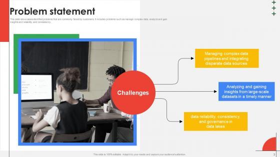 This slide showcases identified problems that are commonly faced by customers. It includes problems such as manage complex data, analyze and gain insights and reliability and consistency. Make sure to capture your audiences attention in your business displays with our gratis customizable Problem Statement Cloud Platform Provider Investor Funding Elevator Brochure Pdf. These are great for business strategies, office conferences, capital raising or task suggestions. If you desire to acquire more customers for your tech business and ensure they stay satisfied, create your own sales presentation with these plain slides. This slide showcases identified problems that are commonly faced by customers. It includes problems such as manage complex data, analyze and gain insights and reliability and consistency.