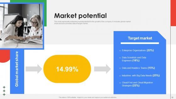 This slide represents esteemed market potential for the growth of the company. It includes global market share and also provides data of target market. If you are looking for a format to display your unique thoughts, then the professionally designed Market Potential Cloud Platform Provider Investor Funding Elevator Guidelines Pdf is the one for you. You can use it as a Google Slides template or a PowerPoint template. Incorporate impressive visuals, symbols, images, and other charts. Modify or reorganize the text boxes as you desire. Experiment with shade schemes and font pairings. Alter, share or cooperate with other people on your work. Download Market Potential Cloud Platform Provider Investor Funding Elevator Guidelines Pdf and find out how to give a successful presentation. Present a perfect display to your team and make your presentation unforgettable. This slide represents esteemed market potential for the growth of the company. It includes global market share and also provides data of target market.