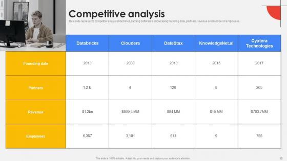 This slide represents competitor analysis Machine Learning Softwares showcasing founding date, partners, revenue and number of employees. Want to ace your presentation in front of a live audience Our Competitive Analysis Cloud Platform Provider Investor Funding Elevator Introduction Pdf can help you do that by engaging all the users towards you. Slidegeeks experts have put their efforts and expertise into creating these impeccable powerpoint presentations so that you can communicate your ideas clearly. Moreover, all the templates are customizable, and easy-to-edit and downloadable. Use these for both personal and commercial use. This slide represents competitor analysis Machine Learning Softwares showcasing founding date, partners, revenue and number of employees.