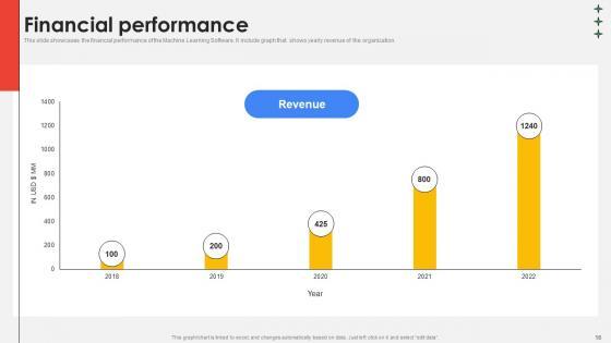 This slide showcases the financial performance of the Machine Learning Software. It include graph that shows yearly revenue of the organization. From laying roadmaps to briefing everything in detail, our templates are perfect for you. You can set the stage with your presentation slides. All you have to do is download these easy-to-edit and customizable templates. Financial Performance Cloud Platform Provider Investor Funding Elevator Ideas Pdf will help you deliver an outstanding performance that everyone would remember and praise you for. Do download this presentation today. This slide showcases the financial performance of the Machine Learning Software. It include graph that shows yearly revenue of the organization.