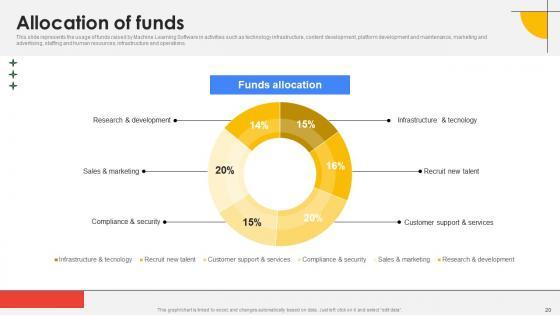 This slide represents the usage of funds raised by Machine Learning Software in activities such as technology infrastructure, content development, platform development and maintenance, marketing and advertising, staffing and human resources, infrastructure and operations. Find a pre-designed and impeccable Allocation Of Funds Cloud Platform Provider Investor Funding Elevator Portrait Pdf. The templates can ace your presentation without additional effort. You can download these easy-to-edit presentation templates to make your presentation stand out from others. So, what are you waiting for Download the template from Slidegeeks today and give a unique touch to your presentation. This slide represents the usage of funds raised by Machine Learning Software in activities such as technology infrastructure, content development, platform development and maintenance, marketing and advertising, staffing and human resources, infrastructure and operations.