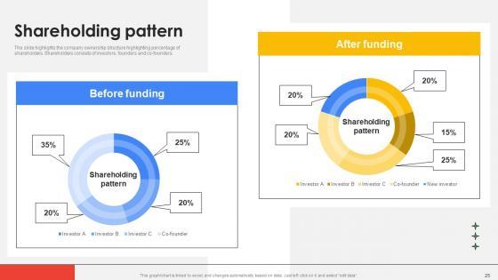 The slide highlights the company ownership structure highlighting percentage of shareholders. Shareholders consists of investors, founders and co-founders. This modern and well-arranged Shareholding Pattern Cloud Platform Provider Investor Funding Elevator Professional Pdf provides lots of creative possibilities. It is very simple to customize and edit with the Powerpoint Software. Just drag and drop your pictures into the shapes. All facets of this template can be edited with Powerpoint, no extra software is necessary. Add your own material, put your images in the places assigned for them, adjust the colors, and then you can show your slides to the world, with an animated slide included. The slide highlights the company ownership structure highlighting percentage of shareholders. Shareholders consists of investors, founders and co-founders.