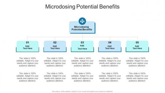 Introducing our well designed Microdosing Potential Benefits In Powerpoint And Google Slides Cpb. This PowerPoint design presents information on topics like Microdosing Potential Benefits. As it is predesigned it helps boost your confidence level. It also makes you a better presenter because of its high quality content and graphics. This PPT layout can be downloaded and used in different formats like PDF, PNG, and JPG. Not only this, it is available in both Standard Screen and Widescreen aspect ratios for your convenience. Therefore, click on the download button now to persuade and impress your audience. Our Microdosing Potential Benefits In Powerpoint And Google Slides Cpb are topically designed to provide an attractive backdrop to any subject. Use them to look like a presentation pro.