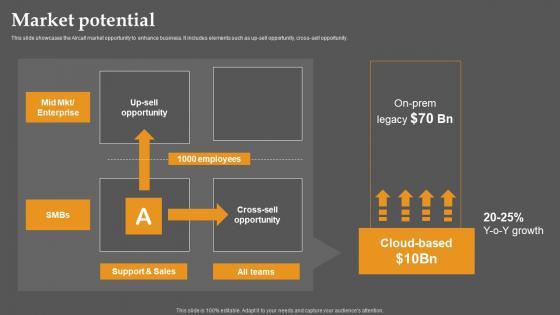 This slide showcases the Aircall market opportunity to enhance business. It includes elements such as up sell opportunity, cross sell opportunity. If your project calls for a presentation, then Slidegeeks is your go to partner because we have professionally designed, easy to edit templates that are perfect for any presentation. After downloading, you can easily edit Market Potential Business Communication Improvement Platform Investor Information Pdf and make the changes accordingly. You can rearrange slides or fill them with different images. Check out all the handy templates This slide showcases the Aircall market opportunity to enhance business. It includes elements such as up sell opportunity, cross sell opportunity.