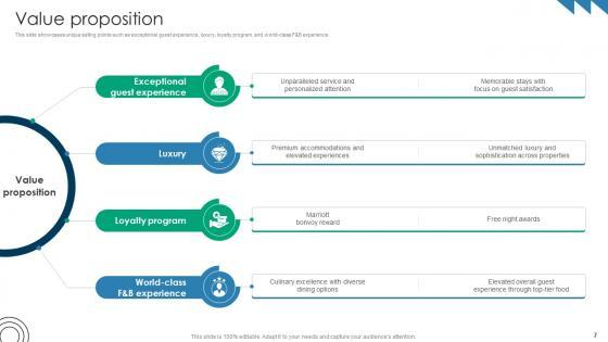 This slide showcases unique selling points such as exceptional guest experience, luxury, loyalty program, and world-class F and B experience. Are you in need of a template that can accommodate all of your creative concepts This one is crafted professionally and can be altered to fit any style. Use it with Google Slides or PowerPoint. Include striking photographs, symbols, depictions, and other visuals. Fill, move around, or remove text boxes as desired. Test out color palettes and font mixtures. Edit and save your work, or work with colleagues. Download Value Proposition Premium Hospitality Service Business Model BMC SS V and observe how to make your presentation outstanding. Give an impeccable presentation to your group and make your presentation unforgettable. This slide showcases unique selling points such as exceptional guest experience, luxury, loyalty program, and world-class F and B experience.