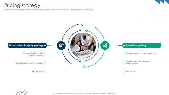 This slide showcases strategies to determine product prices and enhance sales. Strategies are demand and supply pricing and premium pricing. Do you have an important presentation coming up Are you looking for something that will make your presentation stand out from the rest Look no further than Pricing Strategy Premium Hospitality Service Business Model BMC SS V. With our professional designs, you can trust that your presentation will pop and make delivering it a smooth process. And with Slidegeeks, you can trust that your presentation will be unique and memorable. So why wait Grab Pricing Strategy Premium Hospitality Service Business Model BMC SS V today and make your presentation stand out from the rest. This slide showcases strategies to determine product prices and enhance sales. Strategies are demand and supply pricing and premium pricing.