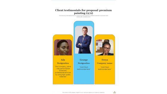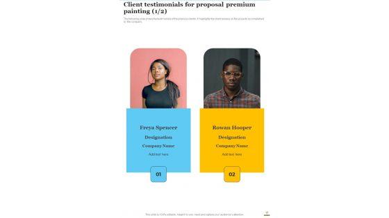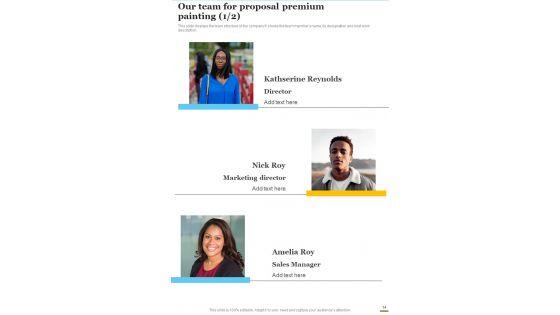 Here is a predesigned Proposal For Premium Painting Services Example Document Report Doc Pdf Ppt for you. Built on extensive research and analysis, this one-complete deck has all the center pieces of your specific requirements. This temple exudes brilliance and professionalism. Being completely editable, you can make changes to suit your purpose. Get this Proposal For Premium Painting Services Example Document Report Doc Pdf Ppt A4 One-pager now. Our Proposal For Premium Painting Services Example Document Report Doc Pdf Ppt are topically designed to provide an attractive backdrop to any subject. Use them to look like a presentation pro.