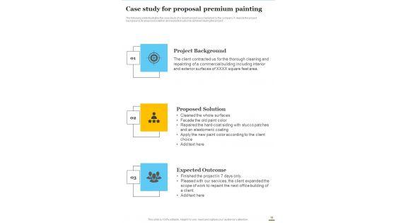 Presenting you an exemplary Cover Letter For Proposal For Premium Painting Services One Pager Sample Example Document. Our one-pager comprises all the must-have essentials of an inclusive document. You can edit it with ease, as its layout is completely editable. With such freedom, you can tweak its design and other elements to your requirements. Download this Cover Letter For Proposal For Premium Painting Services One Pager Sample Example Document brilliant piece now. Our Cover Letter For Proposal For Premium Painting Services One Pager Sample Example Document are topically designed to provide an attractive backdrop to any subject. Use them to look like a presentation pro.