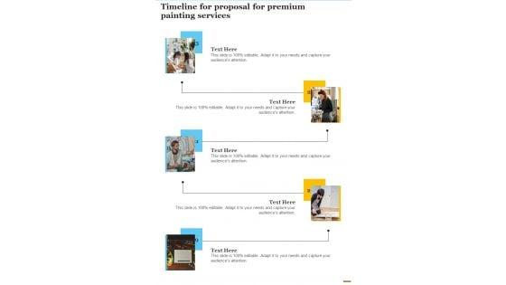 Presenting you an exemplary Timeline For Proposal For Premium Painting Services One Pager Sample Example Document. Our one-pager comprises all the must-have essentials of an inclusive document. You can edit it with ease, as its layout is completely editable. With such freedom, you can tweak its design and other elements to your requirements. Download this Timeline For Proposal For Premium Painting Services One Pager Sample Example Document brilliant piece now. Our Timeline For Proposal For Premium Painting Services One Pager Sample Example Document are topically designed to provide an attractive backdrop to any subject. Use them to look like a presentation pro.