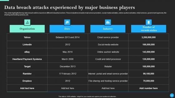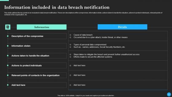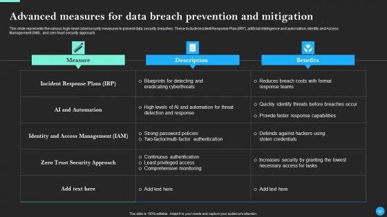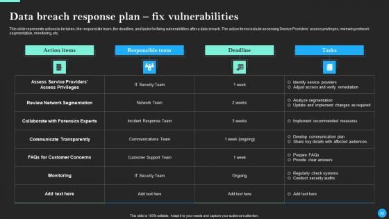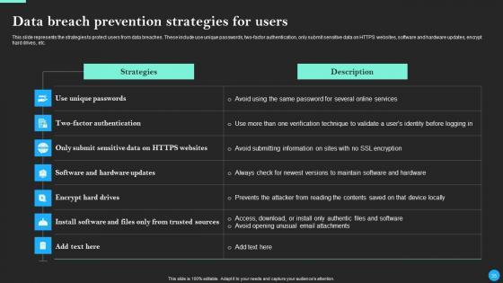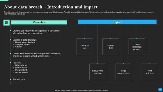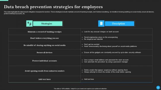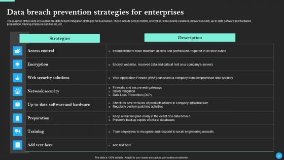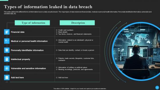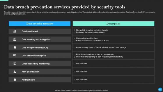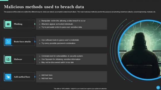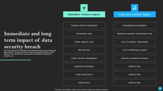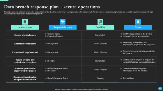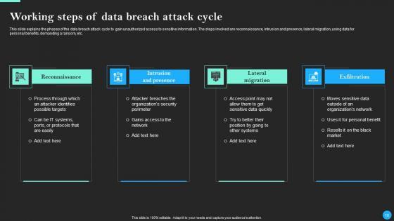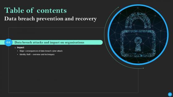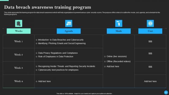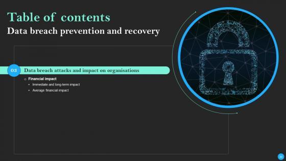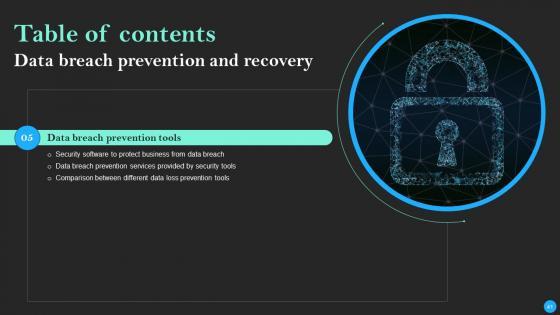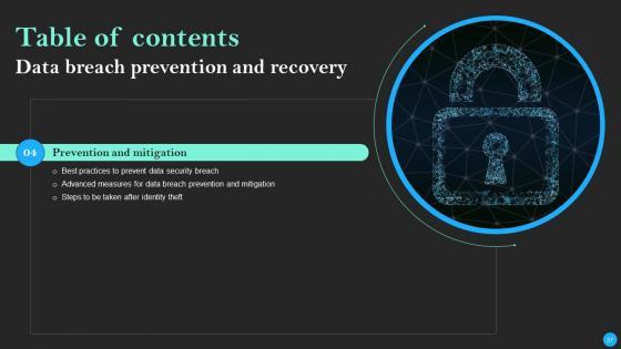 This Data Breach Prevention And Recovery Ppt PowerPoint Presentation Complete Deck With Slides is designed to help you retain your audiences attention. This content-ready PowerPoint Template enables you to take your audience on a journey and share information in a way that is easier to recall. It helps you highlight the crucial parts of your work so that the audience does not get saddled with information download. This seventy five slide PPT Deck comes prepared with the graphs and charts you could need to showcase your information through visuals. You only need to enter your own data in them. Download this editable PowerPoint Theme and walk into that meeting with confidence. Our Data Breach Prevention And Recovery Ppt PowerPoint Presentation Complete Deck With Slides are topically designed to provide an attractive backdrop to any subject. Use them to look like a presentation pro.