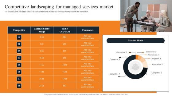 The following slide provides a detailed analysis of the market share of our company in comparison to the competition. Take your projects to the next level with our ultimate collection of Individualized Pricing Approach For Managed Services Competitive Landscaping Managed Services Market Mockup PDF. Slidegeeks has designed a range of layouts that are perfect for representing task or activity duration, keeping track of all your deadlines at a glance. Tailor these designs to your exact needs and give them a truly corporate look with your own brand colors they will make your projects stand out from the rest