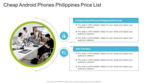 Introducing our well designed Cheap Android Phones Philippines Price List In Powerpoint And Google Slides Cpb. This PowerPoint design presents information on topics like Cheap Android Phones Philippines Price List. As it is predesigned it helps boost your confidence level. It also makes you a better presenter because of its high quality content and graphics. This PPT layout can be downloaded and used in different formats like PDF, PNG, and JPG. Not only this, it is available in both Standard Screen and Widescreen aspect ratios for your convenience. Therefore, click on the download button now to persuade and impress your audience. Our Cheap Android Phones Philippines Price List In Powerpoint And Google Slides Cpb are topically designed to provide an attractive backdrop to any subject. Use them to look like a presentation pro.