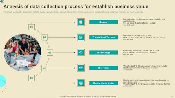 This slide showcases the data analysis framework for business decision process. It includes various elements of framework such as data, models, decisions and value. Persuade your audience using this Procedure Of Evaluating Data Framework For Business Decision Process Demonstration PDF. This PPT design covers four stages, thus making it a great tool to use. It also caters to a variety of topics including Data, Decisions, Value. Download this PPT design now to present a convincing pitch that not only emphasizes the topic but also showcases your presentation skills.