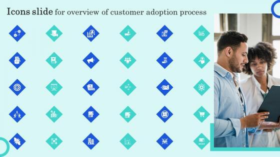 Introducing our well designed Icons Slide For Overview Of Customer Adoption Process Inspiration Pdf set of slides. The slide displays editable icons to enhance your visual presentation. The icons can be edited easily. So customize according to your business to achieve a creative edge. Download and share it with your audience. Our Icons Slide For Overview Of Customer Adoption Process Inspiration Pdf are topically designed to provide an attractive backdrop to any subject. Use them to look like a presentation pro.