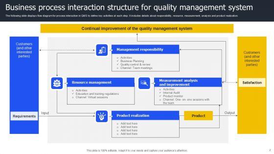 The following slide displays process interaction flowchart for QMS in organization to deliver best quality products in market. It includes key components such as quotes and orders, fulfillment and product support. Showcasing this set of slides titled Business Process Interaction Diagram For Quality Management System Graphics PDF. The topics addressed in these templates are Business Strategy, Product Design, Order Fulfillment. All the content presented in this PPT design is completely editable. Download it and make adjustments in color, background, font etc. as per your unique business setting.