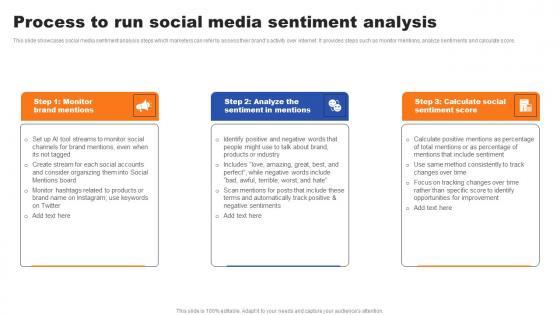 This slide showcases social media sentiment analysis steps which marketers can refer to assess their brands activity over internet. It provides steps such as monitor mentions, analyze sentiments and calculate score. There are so many reasons you need a Process To Run Social Media Sentiment Analysis Ppt Professional Slide Download PDF. The first reason is you can not spend time making everything from scratch, Thus, Slidegeeks has made presentation templates for you too. You can easily download these templates from our website easily.