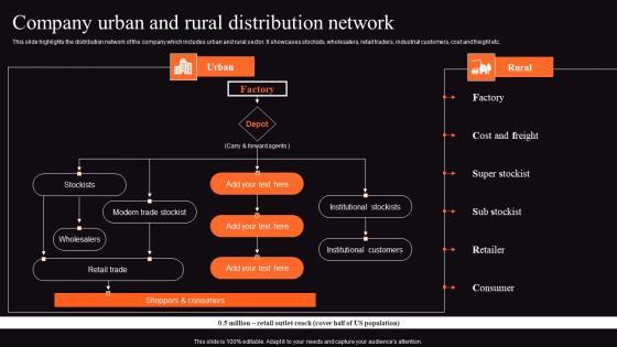 This slide highlights the distribution network of the company which includes urban and rural sector. It showcases stockists, wholesalers, retail traders, industrial customers, cost and freight etc. Presenting this PowerPoint presentation, titled Food Processing Business Profile Company Urban And Rural Distribution Network Elements Pdf, with topics curated by our researchers after extensive research. This editable presentation is available for immediate download and provides attractive features when used. Download now and captivate your audience. Presenting this Food Processing Business Profile Company Urban And Rural Distribution Network Elements Pdf. Our researchers have carefully researched and created these slides with all aspects taken into consideration. This is a completely customizable Food Processing Business Profile Company Urban And Rural Distribution Network Elements Pdf that is available for immediate downloading. Download now and make an impact on your audience. Highlight the attractive features available with our PPTs. This slide highlights the distribution network of the company which includes urban and rural sector. It showcases stockists, wholesalers, retail traders, industrial customers, cost and freight etc.