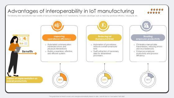 The following slide represents the major benefits of having an interoperability in IoT manufacturing. It includes advantages such as improving operational efficiency, reducing tat, etc. Get a simple yet stunning designed Advantages Of Interoperability In IOT Manufacturing Streamlining Production Ppt Template It is the best one to establish the tone in your meetings. It is an excellent way to make your presentations highly effective. So, download this PPT today from Slidegeeks and see the positive impacts. Our easy-to-edit Advantages Of Interoperability In IOT Manufacturing Streamlining Production Ppt Template can be your go-to option for all upcoming conferences and meetings. So, what are you waiting for Grab this template today. The following slide represents the major benefits of having an interoperability in IoT manufacturing. It includes advantages such as improving operational efficiency, reducing tat, etc.