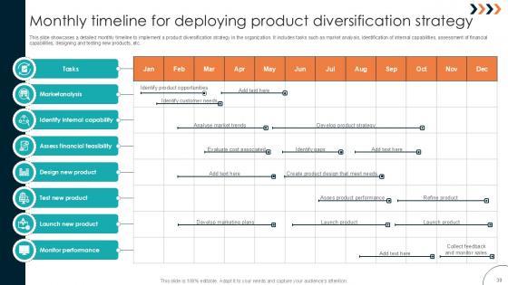 This slide covers product development timeline. It involves gathering resources, strategy development, selection for suppliers, performance validation, prototyping etc. The Monthly Timeline For Effective Implementing Product Diversification PPT Sample Strategy SS V is a compilation of the most recent design trends as a series of slides. It is suitable for any subject or industry presentation, containing attractive visuals and photo spots for businesses to clearly express their messages. This template contains a variety of slides for the user to input data, such as structures to contrast two elements, bullet points, and slides for written information. Slidegeeks is prepared to create an impression. This slide covers product development timeline. It involves gathering resources, strategy development, selection for suppliers, performance validation, prototyping etc.