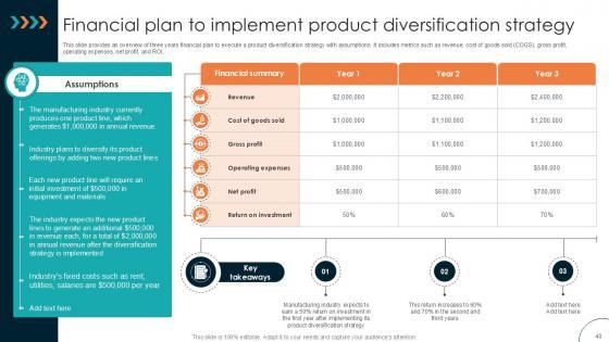 With well-researched insights and carefully-constructed design, this Study Of Product Diversification Strategy Impact On Manufacturing Company Strategy CD is all that you need for your next business meeting with clients and win them over. Add your data to graphs, charts, and tables that are already ready to display it with stunning visuals and help your audience recall your work. With this PPT Complete Deck, you will be able to display your knowledge of the subject as well as your skills as a communicator. Share your ideas and make an impact on the audience with this PowerPoint Layout and ensure that you are known as a presentation professional. Download this PPT Template Bundle to create the most interesting presentation anyone has ever seen. Our Study Of Product Diversification Strategy Impact On Manufacturing Company Strategy CD are topically designed to provide an attractive backdrop to any subject. Use them to look like a presentation pro.