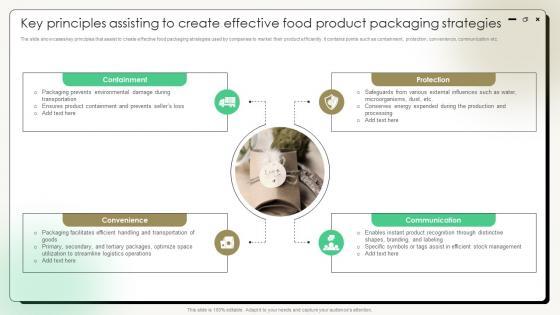 The slide showcases key principles that assist to create effective food packaging strategies used by companies to market their product efficiently. It contains points such as containment, protection, convenience, communication etc. This Key Principles Assisting To Create Effective Food Product Packaging Strategies is perfect for any presentation, be it in front of clients or colleagues. It is a versatile and stylish solution for organizing your meetings. The Key Principles Assisting To Create Effective Food Product Packaging Strategies features a modern design for your presentation meetings. The adjustable and customizable slides provide unlimited possibilities for acing up your presentation. Slidegeeks has done all the homework before launching the product for you. So, do not wait, grab the presentation templates today The slide showcases key principles that assist to create effective food packaging strategies used by companies to market their product efficiently. It contains points such as containment, protection, convenience, communication etc.