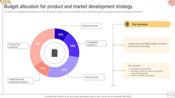 This slide covers budget allocation for product and market development strategy. It involves cost allocation such as product line extension, geographic expansion and advertising and promotions. Want to ace your presentation in front of a live audience Our Budget Allocation For Product Implementing Geographic Extension PPT Presentation Strategy SS V can help you do that by engaging all the users towards you. Slidegeeks experts have put their efforts and expertise into creating these impeccable powerpoint presentations so that you can communicate your ideas clearly. Moreover, all the templates are customizable, and easy-to-edit and downloadable. Use these for both personal and commercial use. This slide covers budget allocation for product and market development strategy. It involves cost allocation such as product line extension, geographic expansion and advertising and promotions.