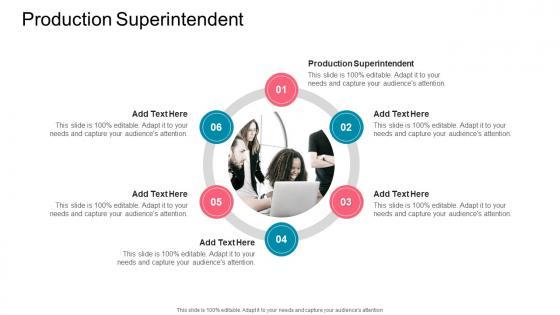 Introducing our well designed Production Superintendent In Powerpoint And Google Slides Cpb. This PowerPoint design presents information on topics like Production Superintendent. As it is predesigned it helps boost your confidence level. It also makes you a better presenter because of its high quality content and graphics. This PPT layout can be downloaded and used in different formats like PDF, PNG, and JPG. Not only this, it is available in both Standard Screen and Widescreen aspect ratios for your convenience. Therefore, click on the download button now to persuade and impress your audience. Our Production Superintendent In Powerpoint And Google Slides Cpb are topically designed to provide an attractive backdrop to any subject. Use them to look like a presentation pro.
