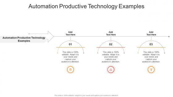 Presenting our innovatively designed set of slides titled Automation Productive Technology Examples In Powerpoint And Google Slides Cpb. This completely editable PowerPoint graphic exhibits Automation Productive Technology Examples that will help you convey the message impactfully. It can be accessed with Google Slides and is available in both standard screen and widescreen aspect ratios. Apart from this, you can download this well structured PowerPoint template design in different formats like PDF, JPG, and PNG. So, click the download button now to gain full access to this PPT design. Our Automation Productive Technology Examples In Powerpoint And Google Slides Cpb are topically designed to provide an attractive backdrop to any subject. Use them to look like a presentation pro.