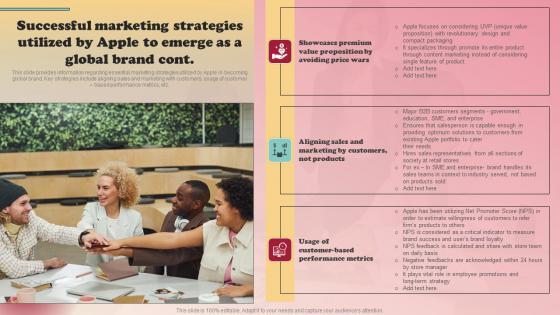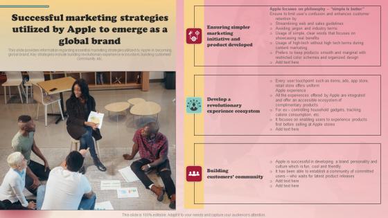 This slide provides information regarding essential marketing strategies utilized by Apple in becoming global brand. Key strategies include building revolutionary experience ecosystem, building customers community, etc. Boost your pitch with our creative Product Branding Strategy Of Apple Successful Marketing Strategies Utilized Professional Pdf. Deliver an awe-inspiring pitch that will mesmerize everyone. Using these presentation templates you will surely catch everyones attention. You can browse the ppts collection on our website. We have researchers who are experts at creating the right content for the templates. So you do not have to invest time in any additional work. Just grab the template now and use them. This slide provides information regarding essential marketing strategies utilized by Apple in becoming global brand. Key strategies include building revolutionary experience ecosystem, building customers community, etc.
