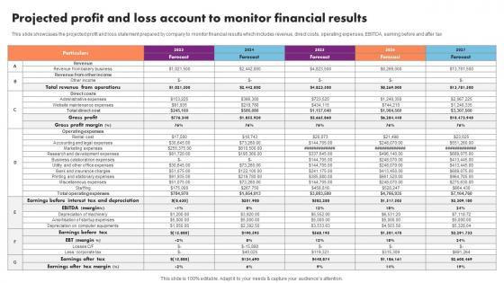 This slide showcases the projected profit and loss statement prepared by company to monitor financial results which includes revenue, direct costs, operating expenses, EBITDA, earning before and after tax Boost your pitch with our creative Projected Profit And Loss Account Event Management Business Plan Go To Market Strategy Topics Pdf. Deliver an awe inspiring pitch that will mesmerize everyone. Using these presentation templates you will surely catch everyones attention. You can browse the ppts collection on our website. We have researchers who are experts at creating the right content for the templates. So you do not have to invest time in any additional work. Just grab the template now and use them. This slide showcases the projected profit and loss statement prepared by company to monitor financial results which includes revenue, direct costs, operating expenses, EBITDA, earning before and after tax