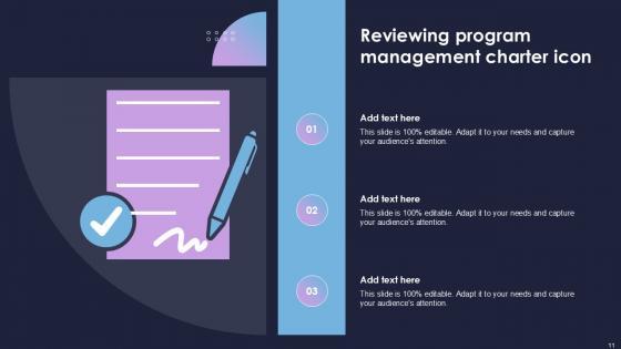 You will save yourself your energy and hours of time when you choose to use this impactful PowerPoint Deck. This Program Management Charter Powerpoint Ppt Template Bundles has been tailor-made to your business needs which ensures that you will always be prepared for that next meeting. Worry can not touch you when you present in your area of expertise using this PPT Template Bundle. With a modern design and easy to follow structure, this PowerPoint Presentation has Program Governance Framework, Project Oversight Charter, Program Execution Blueprint, Strategic Management Charter, Program Operations Guide-slides, which ensures that you can cover you need to without much work. Create your next presentation using this PPT Theme to deliver a memorable performance. Our Program Management Charter Powerpoint Ppt Template Bundles are topically designed to offer an attractive backdrop to any subject. Use them to look like presentation pro