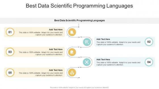 Presenting our innovatively designed set of slides titled Best Data Scientific Programming Languages In Powerpoint And Google Slides Cpb. This completely editable PowerPoint graphic exhibits Best Data Scientific Programming Languages that will help you convey the message impactfully. It can be accessed with Google Slides and is available in both standard screen and widescreen aspect ratios. Apart from this, you can download this well structured PowerPoint template design in different formats like PDF, JPG, and PNG. So, click the download button now to gain full access to this PPT design. Our Best Data Scientific Programming Languages In Powerpoint And Google Slides Cpb are topically designed to provide an attractive backdrop to any subject. Use them to look like a presentation pro.