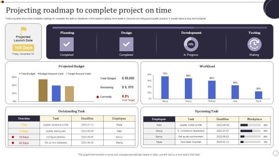 Following slide shows the complete roadmap to complete the task on deadlines which assist in getting more leads in future by providing good quality product. It usually takes a long term projects Showcasing this set of slides titled Projecting Roadmap To Complete Project On Time Rules Pdf. The topics addressed in these templates are Projecting Roadmap, Complete Project On Time. All the content presented in this PPT design is completely editable. Download it and make adjustments in color, background, font etc. as per your unique business setting. Following slide shows the complete roadmap to complete the task on deadlines which assist in getting more leads in future by providing good quality product. It usually takes a long term projects