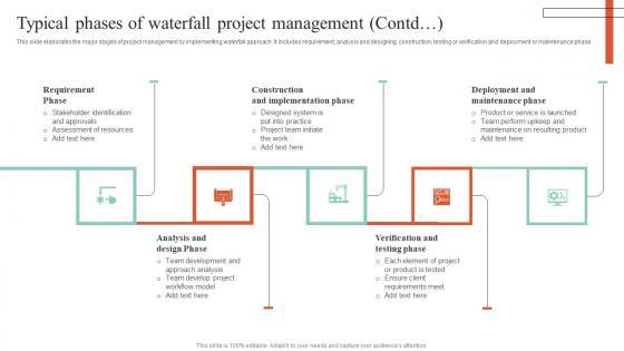 This slide showcases the major stages of project management by implementing waterfall approach. It includes requirement, analysis and designing, construction, testing or verification and deployment or maintenance phase. Crafting an eye-catching presentation has never been more straightforward. Let your presentation shine with this tasteful yet straightforward Executing Guide For Waterfall Typical Phases Of Waterfall Project Management Infographics Pdf template. It offers a minimalistic and classy look that is great for making a statement. The colors have been employed intelligently to add a bit of playfulness while still remaining professional. Construct the ideal Executing Guide For Waterfall Typical Phases Of Waterfall Project Management Infographics Pdf that effortlessly grabs the attention of your audience. Begin now and be certain to wow your customers. This slide showcases the major stages of project management by implementing waterfall approach. It includes requirement, analysis and designing, construction, testing or verification and deployment or maintenance phase.