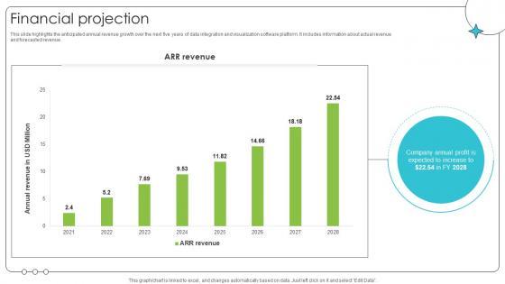 This slide highlights the anticipated annual revenue growth over the next five years of data integration and visualization software platform. It includes information about actual revenue and forecasted revenue. Slidegeeks is here to make your presentations a breeze with Financial Projection Investor Oriented Urbanlogiq Fundraising Deck With our easy-to-use and customizable templates, you can focus on delivering your ideas rather than worrying about formatting. With a variety of designs to choose from, you are sure to find one that suits your needs. And with animations and unique photos, illustrations, and fonts, you can make your presentation pop. So whether you are giving a sales pitch or presenting to the board, make sure to check out Slidegeeks first This slide highlights the anticipated annual revenue growth over the next five years of data integration and visualization software platform. It includes information about actual revenue and forecasted revenue.