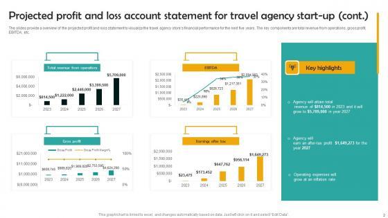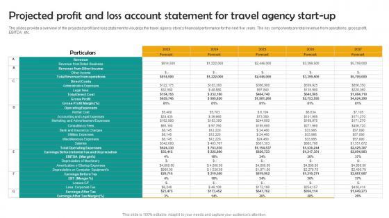 The slides provide a overview of the projected profit and loss statement to visualize the travel agency stores financial performance for the next five years. The key components are total revenue from operations, gross profit, EBITDA, etc. Slidegeeks has constructed Projected Profit And Loss Account Cultural Travel Agency Business Plan Structure Pdf after conducting extensive research and examination. These presentation templates are constantly being generated and modified based on user preferences and critiques from editors. Here, you will find the most attractive templates for a range of purposes while taking into account ratings and remarks from users regarding the content. This is an excellent jumping-off point to explore our content and will give new users an insight into our top-notch PowerPoint Templates. The slides provide a overview of the projected profit and loss statement to visualize the travel agency stores financial performance for the next five years. The key components are total revenue from operations, gross profit, EBITDA, etc.