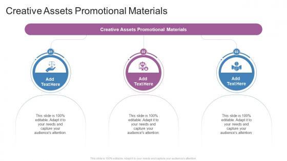 Presenting our innovatively-designed set of slides titled Creative Assets Promotional Materials In Powerpoint And Google Slides Cpb. This completely editable PowerPoint graphic exhibits Creative Assets Promotional Materials that will help you convey the message impactfully. It can be accessed with Google Slides and is available in both standard screen and widescreen aspect ratios. Apart from this, you can download this well-structured PowerPoint template design in different formats like PDF, JPG, and PNG. So, click the download button now to gain full access to this PPT design. Our Creative Assets Promotional Materials In Powerpoint And Google Slides Cpb are topically designed to provide an attractive backdrop to any subject. Use them to look like a presentation pro.